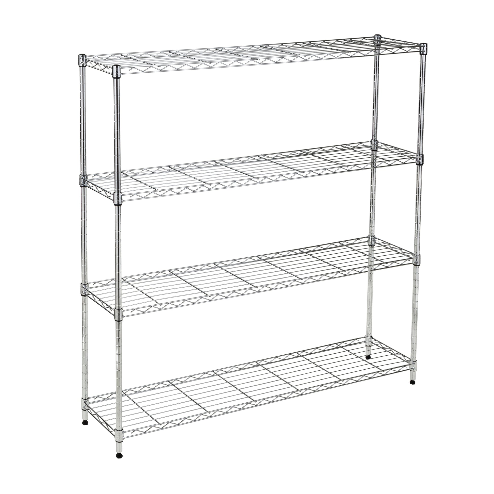 Chrome Steel 4-Tier Slim Profile Wide Shelving Unit