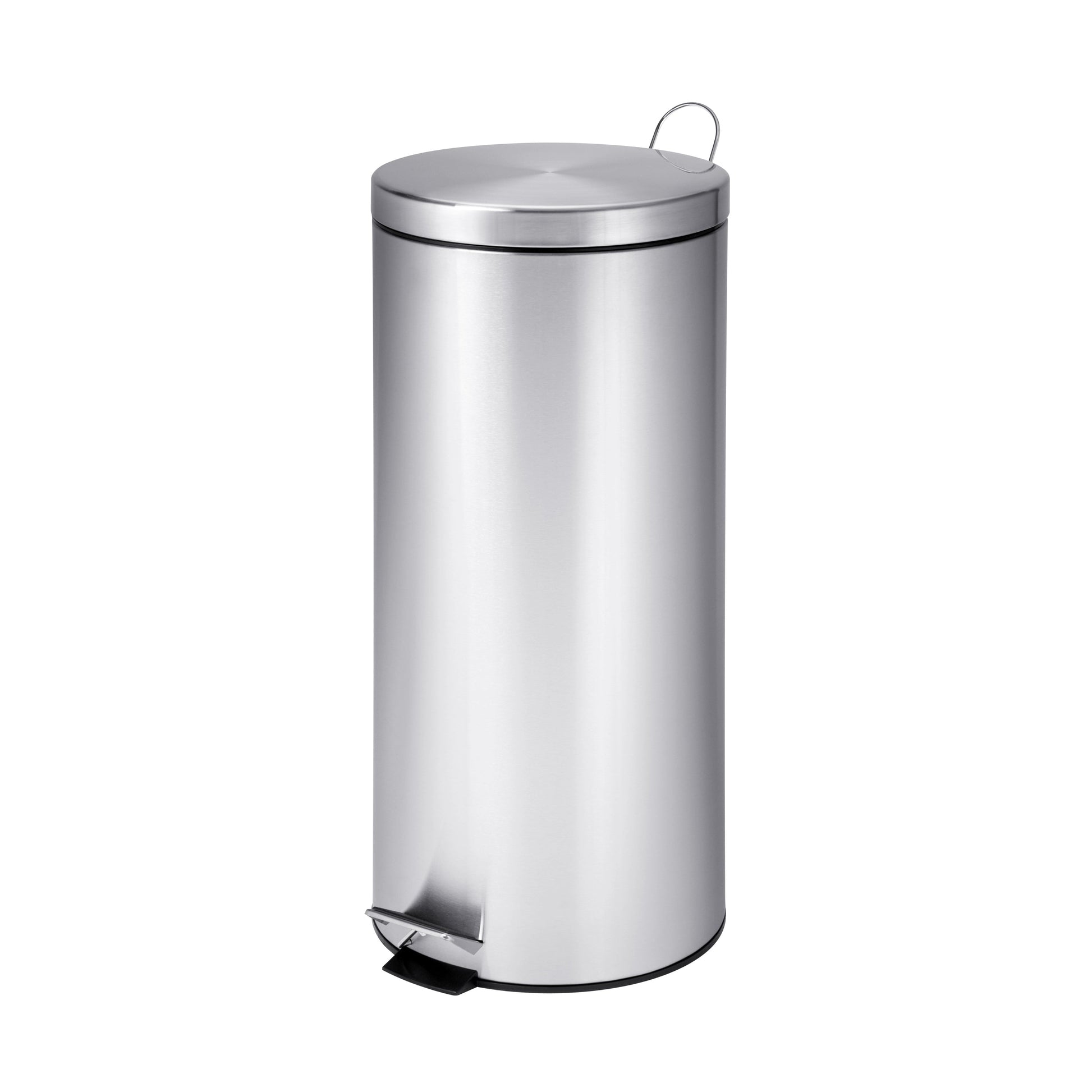 A contemporary addition to any home or office, this 30L trash can boasts sturdy construction for daily use. The steel foot pedal provides hands-free operation to keep germs at bay. An easily removable inner bucket keeps bags from snagging and is easily washable. The matching stainless steel lid hides trash bags from view. The hand print resistant exterior is easy to clean and features a metal fold down carrying handle.