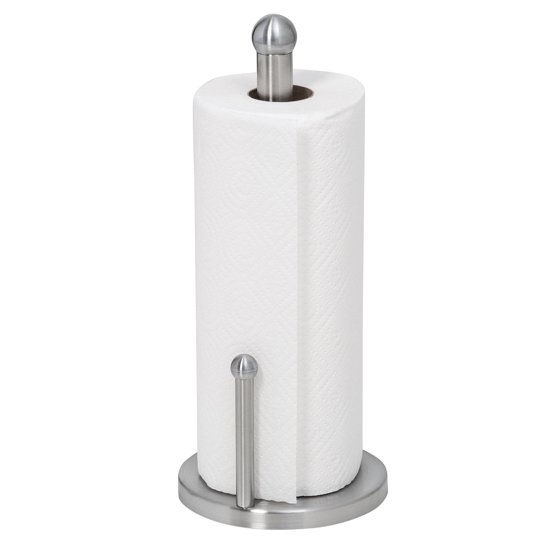 Roll away your daily messes with this paper towel holder. With its stainless steel finish, proudly prop it up in your kitchen, or tuck it away inside a cabinet. Either way, this holder will keep your paper towels at the ready for those nasty spills and inconvenient clean-ups.